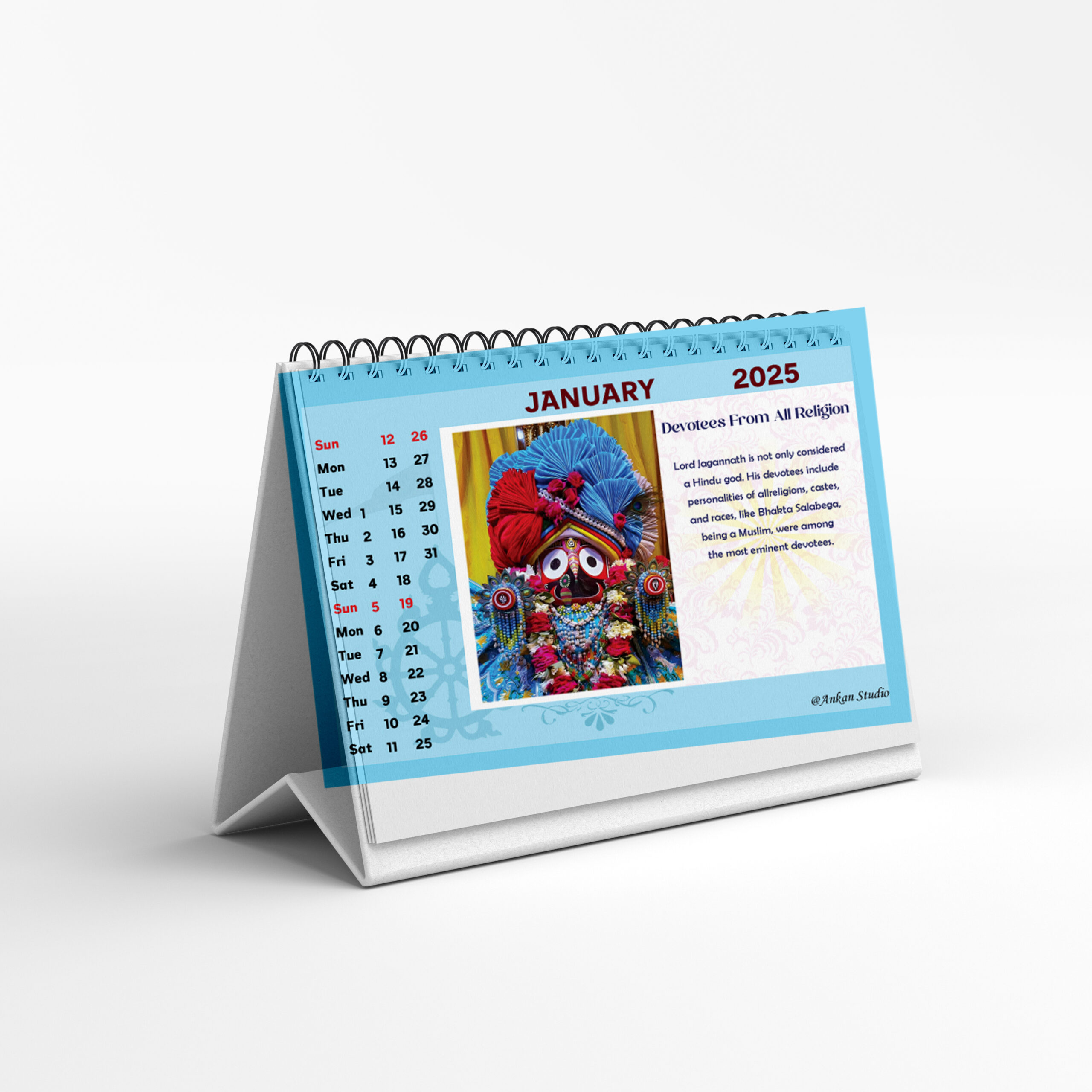> 12 Pages from January to December printed on Front & Back Side with holiday list